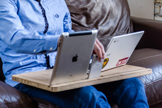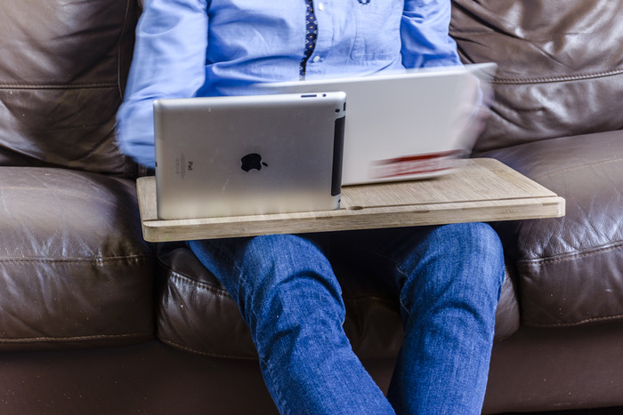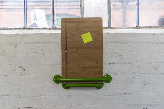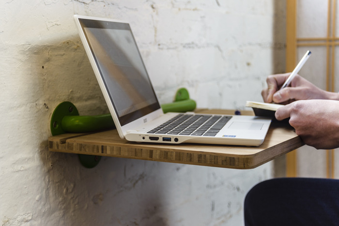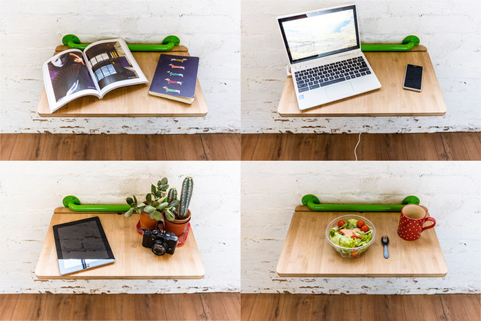 Placa este perfectă pentru spațiile mici, cu ajutorul ei și împreuna cu doua bare de metal, îți poți organiza la perete un mic birou unde să lucrezi cu laptop-ul tău și cu tableta ta. Pe de altă parte, îți poți lua mic dejunul și șa citești știrile confortabil de pe tabletă. Ulterior, te poți așeza cu placa în poală, pe canapea și să-ți începi munca alături de laptop, tabletă și telefon. Placa este realizată din bambus fiind rezistentă și ușoară. Sursa.