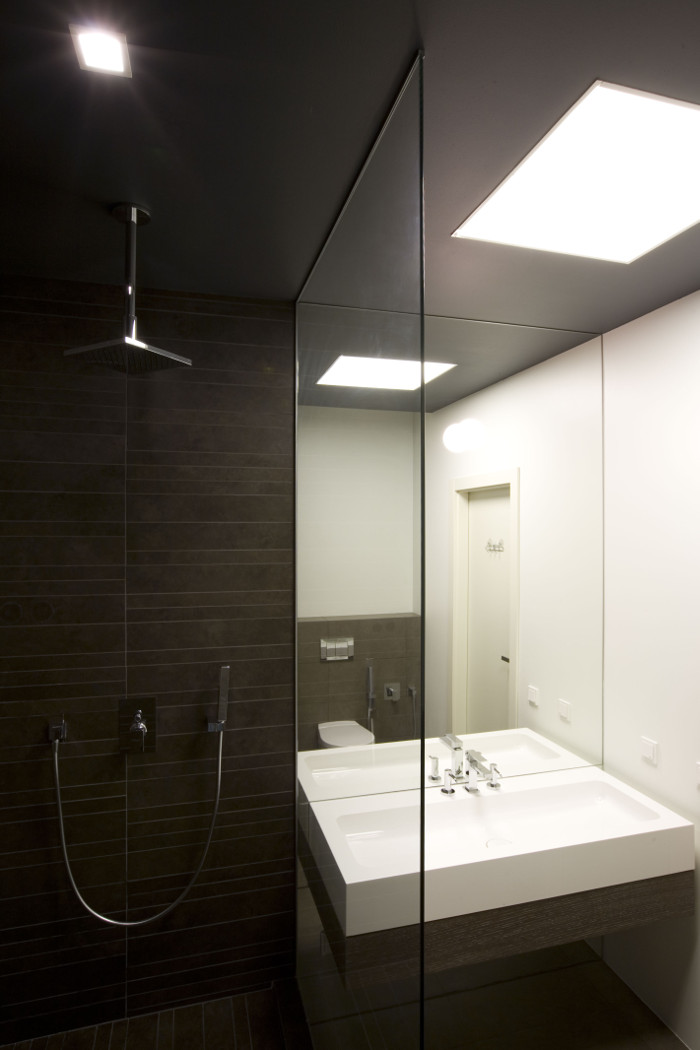 Dușul este mic și simplu, dar realizat din materiale de cea mai bună calitate.