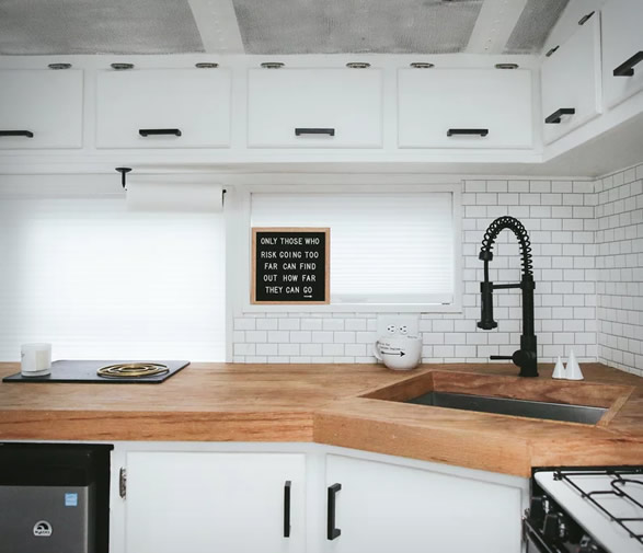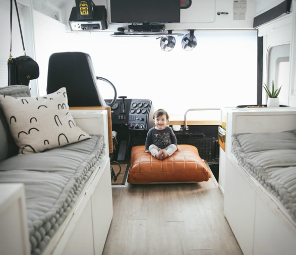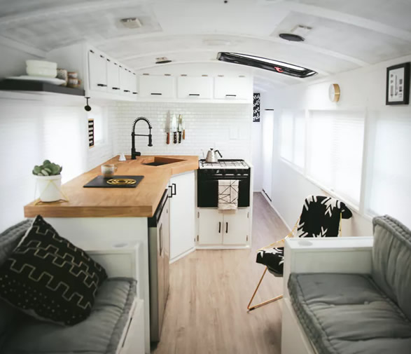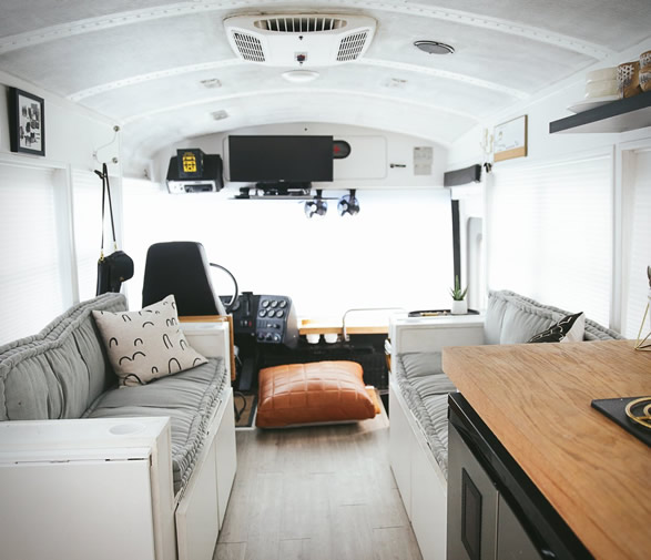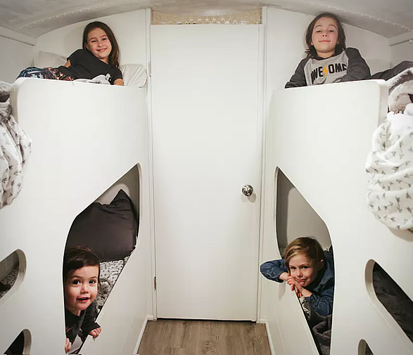 Astfel, noul apartament mobil, integrează o bucătărie modernă, duș, un living confortabil și cinci dormitoare. Rezultatul final este o casă deosebită, plină de lumină, pe roți, cu o mulțime de spații de depozitare pentru întreaga familie. Până în prezent, familia a parcurs 3.000 de mile cu autobuzul lor prin Statele Unite.