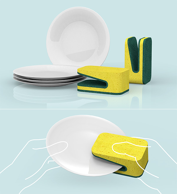 Conceptul Folded Dish Sponge, este un burete pentru spălatul vaselor care te va ajuta să speli vasele și tacâmurile dintr-o singură mișcare. Produsul este câștigător al premiului Red Dot Awards: Design Concept 2014.