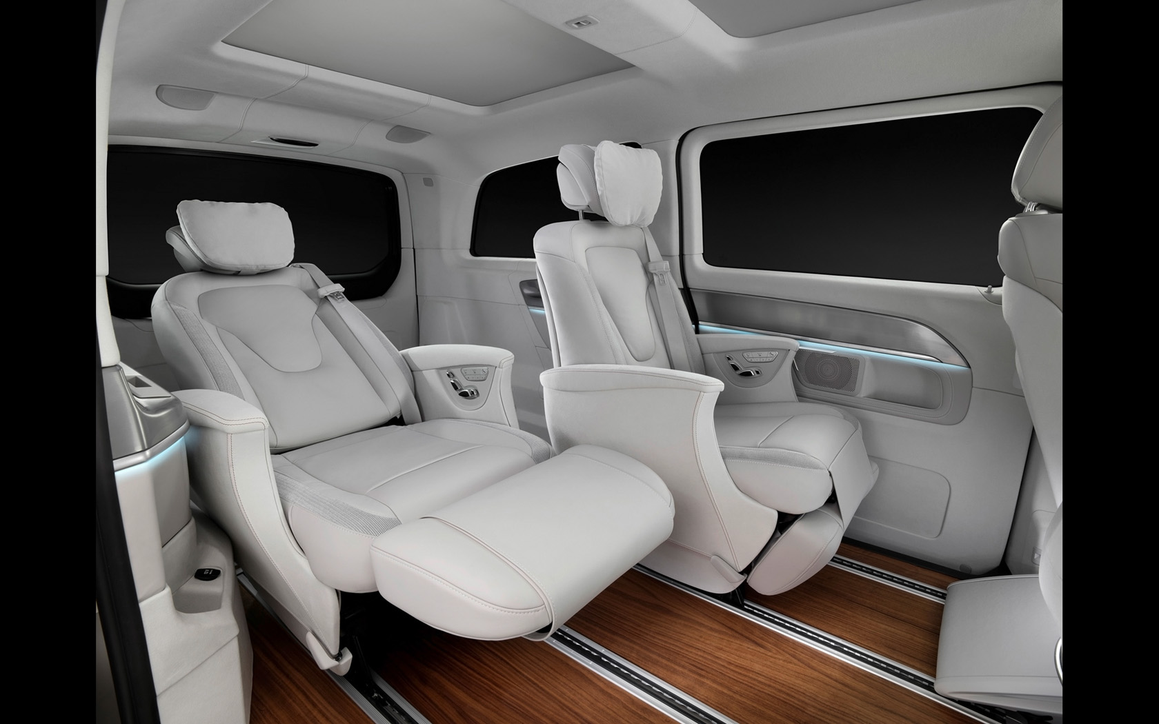 Conceptul Mercedes-Benz V prezentat la Geneva International Motor Show este probabil prima dubă hibridă capabilă să parcurgă 50 km fără combustibil. La interior găzduiește doar 4 locuri, într-un „microbuz” care în mod normal poate găzdui liniștit 9 persoane. Cele 4 locuri sunt de fapt fotolii de înaltă calitate, iar confortul este dus la extrem la propriu.