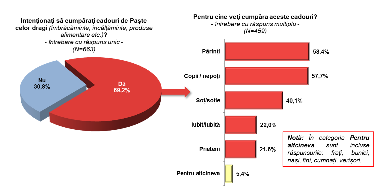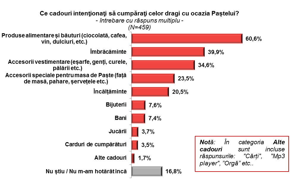 Cu ocazia Paștelui, aproape 70% dintre persoanele intervievate, din mediul urban, au declarat că intenționează să cumpere cadouri celor dragi.