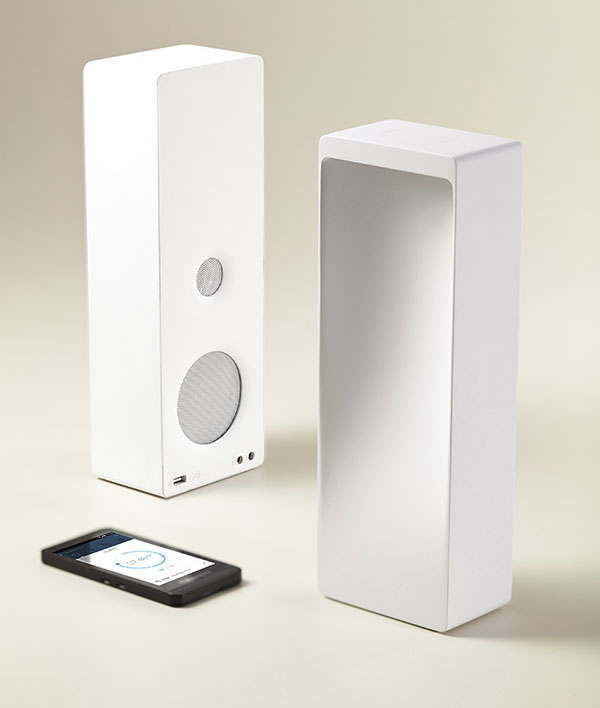 Iată un produs hibrid care poate să satisfacă mai multe necesitați. Designerul Digital Habits a combinat într-un singur dispozitiv un difuzor, un ceas și o veioză („bec”). Produsul complex, difuzor-veioză-ceas poate fi controlat de pe smartphone. Astfel, vei putea să asculți muzica preferată, să setezi când să te trezească alarma, și să personalizezi culorile LED-urilor RGB de la veioză.