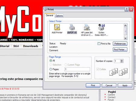 Cu doPDF poți să imprimi virtual orice document în format PDF. Practic, folosind comanda de imprimare “Print” din aproape orice aplicație poți transforma ceea ce vezi pe ecran în PDF.