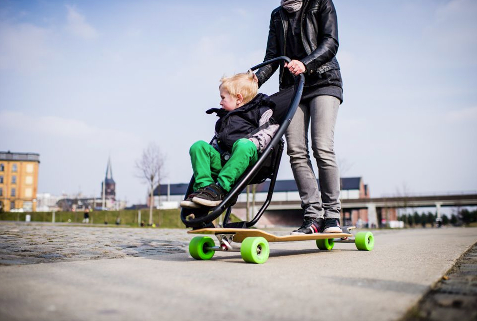 Conceptul „longboard stroller” este destinat evident fanilor de skateboard. Nu am gasit o traducere adecvata pentru skateboard, de fapt , nici nu cred ca s-ar dorit acest lucru. De mic copil stiam de skateboard si atat. Evident skateboard-ul este o placa cu patru roti, iar cu ajutorul ei te poti deplasa rapid si sa faci acrobatii in parc ca sa le uimesti pe prietenele tale, desigur inainte sa patesti ceva, deci ai grija ce minuni planuiesti!