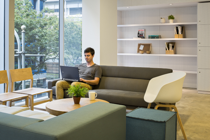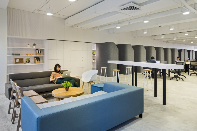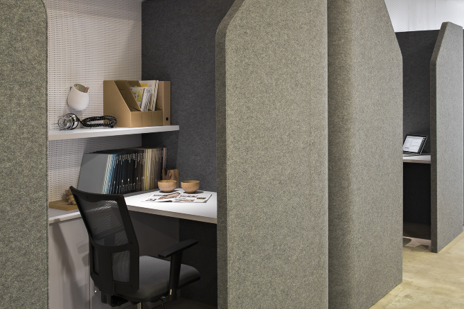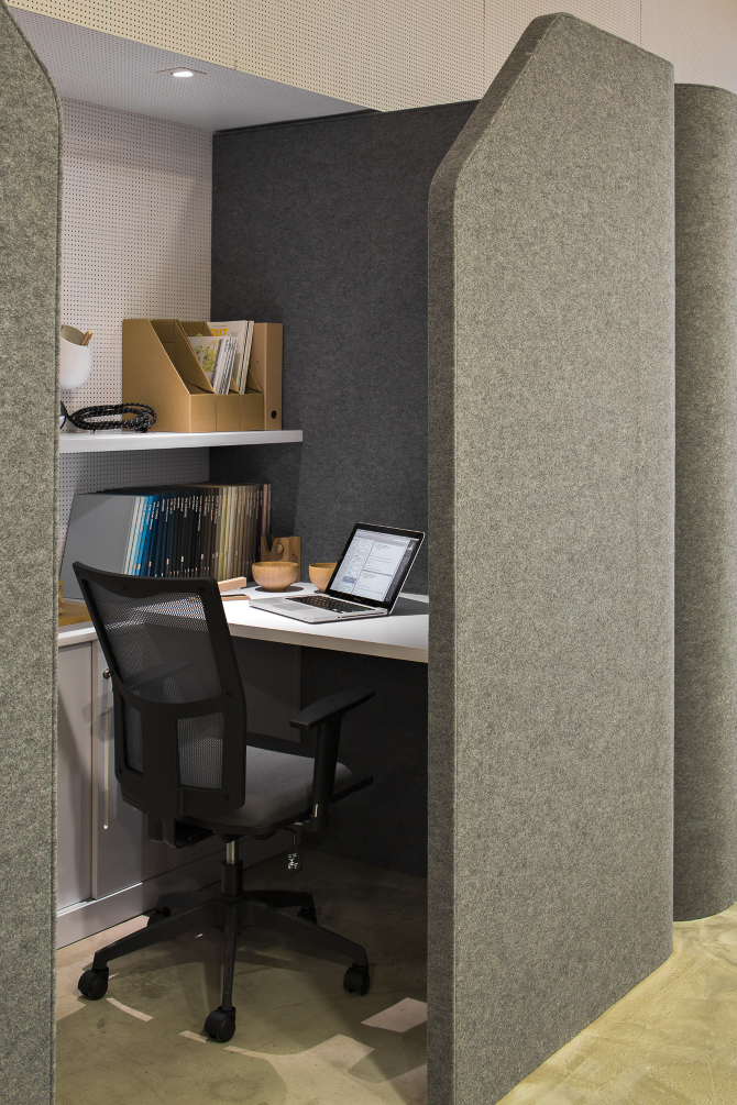 Birourile rotunde creează un ambient pentru munca colaborativă, dar spațiul este dotat și cu birouri private unde cei care doresc să se concentreze mai mult asupra muncii lor, o pot face într-un loc retras, antifonat și izolat de restul halei.