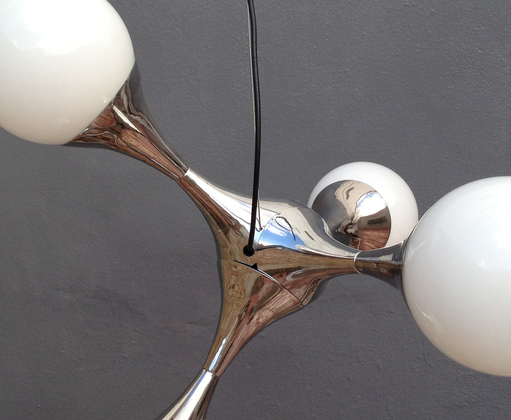 Seria de corpuri de iluminat Brighter Minds concepută de designerul Felix Patone, reconstruiește o moleculă la o dimensiune destul de evidentă. Corpul de iluminat măsoară nu mai puțin de 72 de cm, iar lumina este distribuită omnidirecțional datorită celor patru globuri de 18 cm.