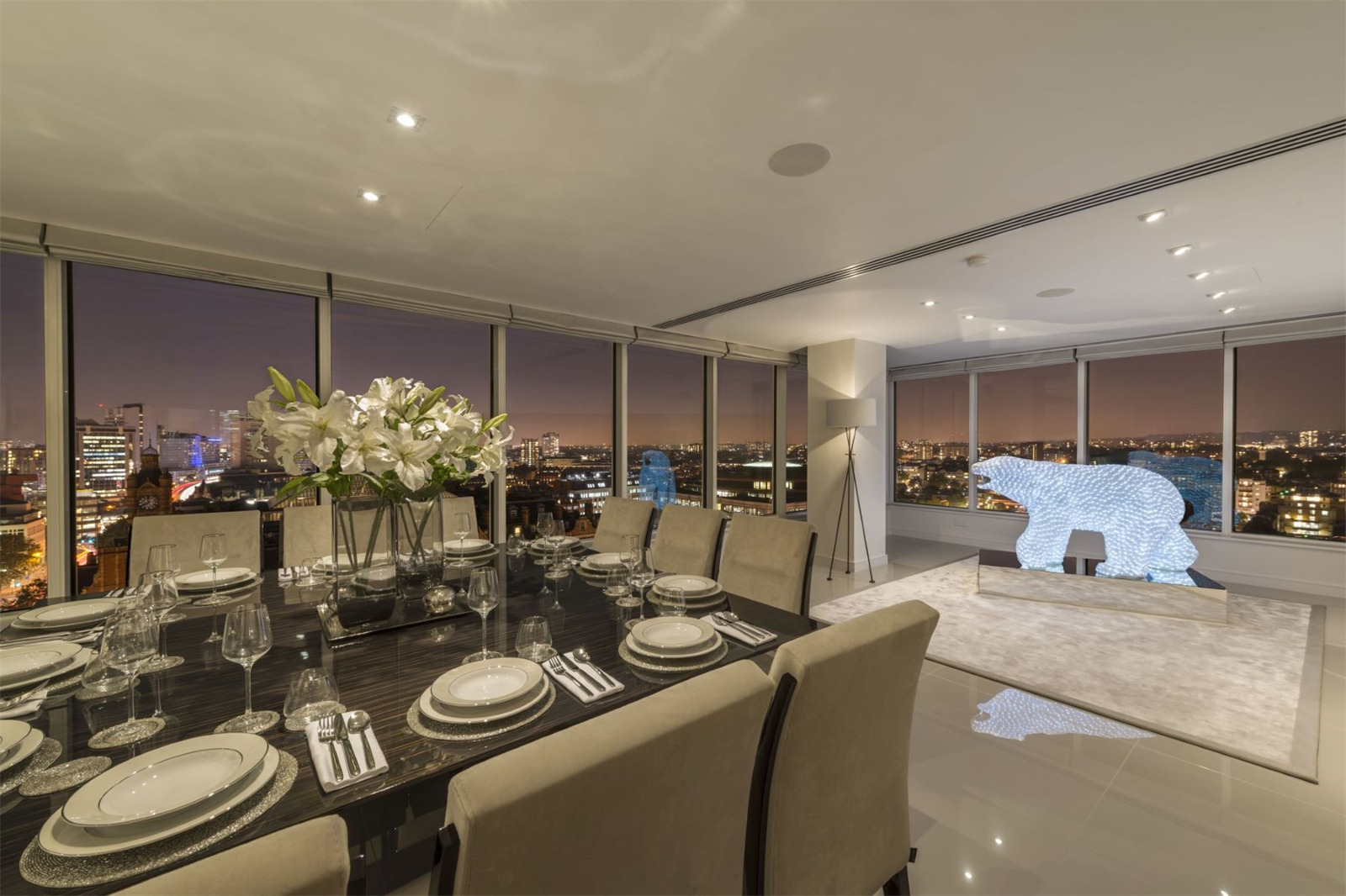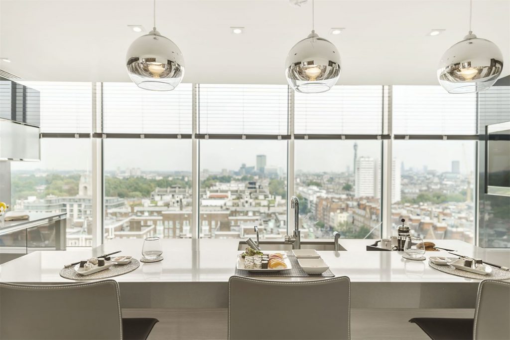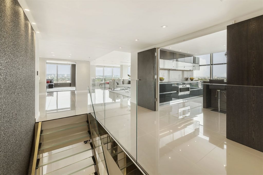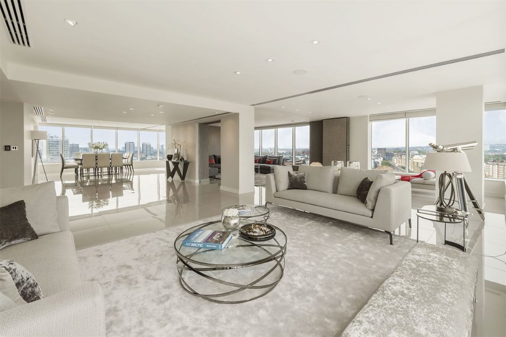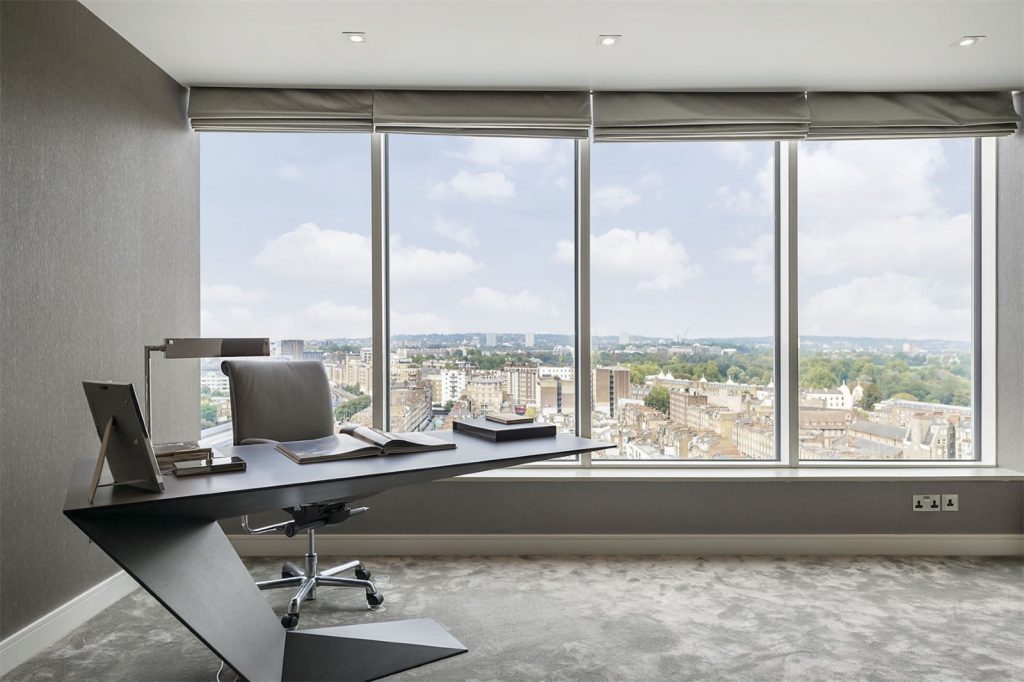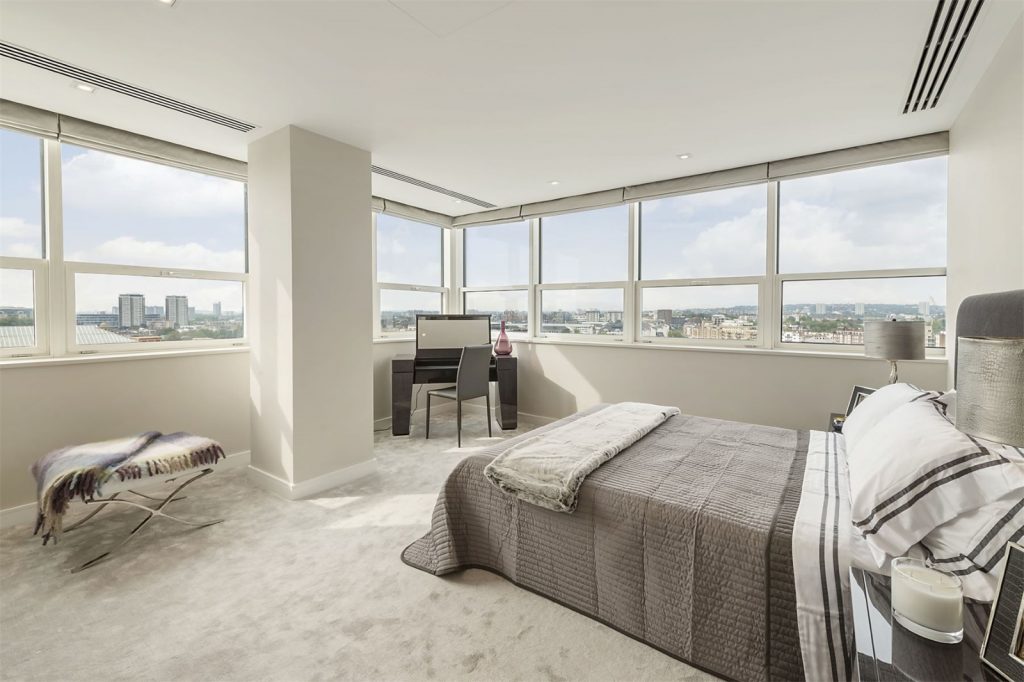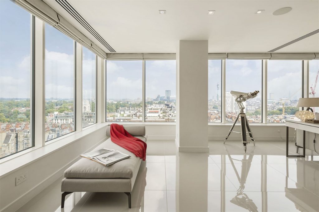 Situata in centrul Londrei, aceasta superba constructie de dimensiuni impozante ocupa aproximativ 4079 de metri patrati si este ticsita cu sticla, detinand o bucatarie moderna, patru dormitoare, patru bai, si o sufragerie imensa.