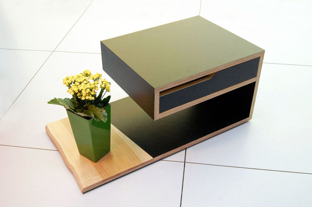 Noptiera în forma litrei C este un concept minimalist și practic. Noptiera dispune de un sertar în față, dar și în spate. Sertarul din spate, poate fi considerat un loc în care să ascundeți ceva de preț, în fața hoților nepricepuți!