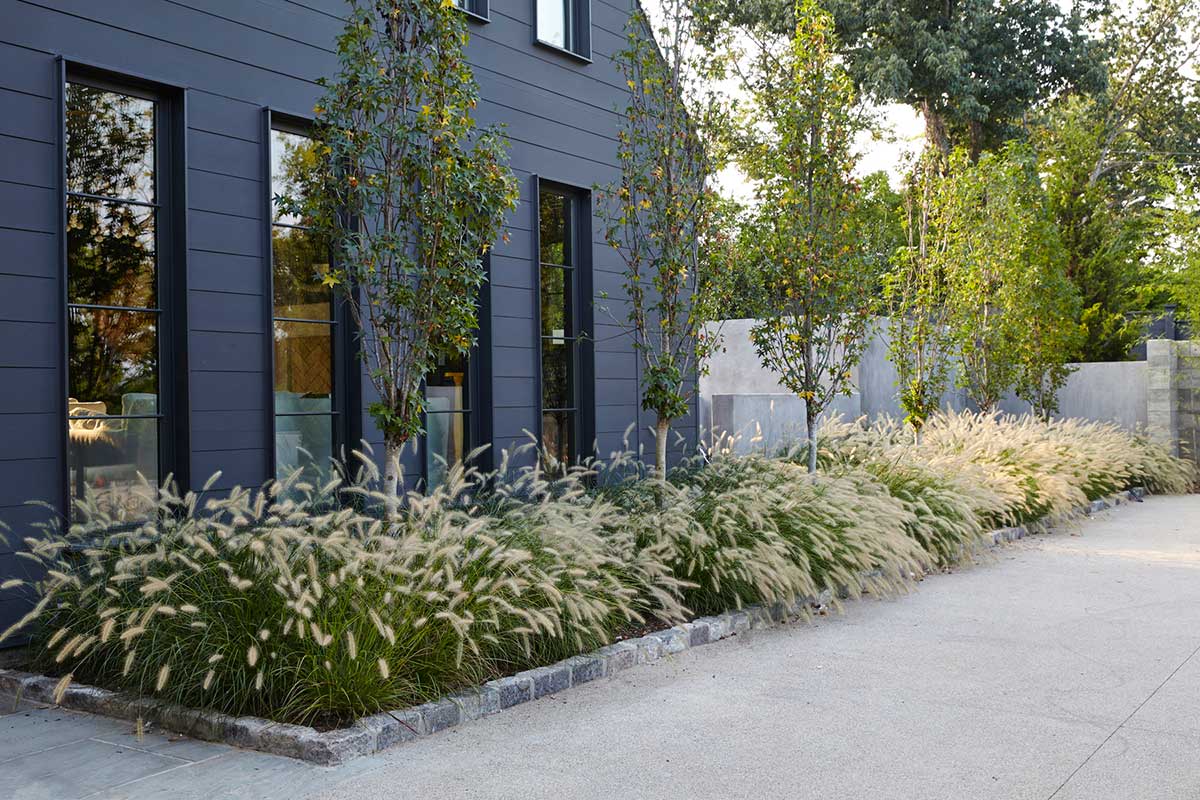 Exteriorul surprinde prin simplitate și eficientă: dale de piatră californiană Redwood, acoperiș placat, verdeață abundentă, copăcei zonali plus o piscină elegantă. Rezultatul este curat, îngrijit și atrăgător, detaliile atrăgând atenția prin grija cu care au fost așezate în locurile potrivite.