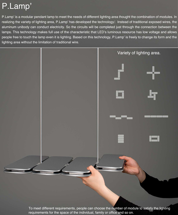 O lampă modulară este necesară unde cerințele sunt foarte ridicate sau stricte și unde un corp de iluminat clasic nu poate să asigure necesarul de lumină cât și modul în care trebuie să ilumineze. P.Lamp nu integrează cablurile clasice pentru conductivitatea electrică, ci utilizează chiar corpul de iluminat.