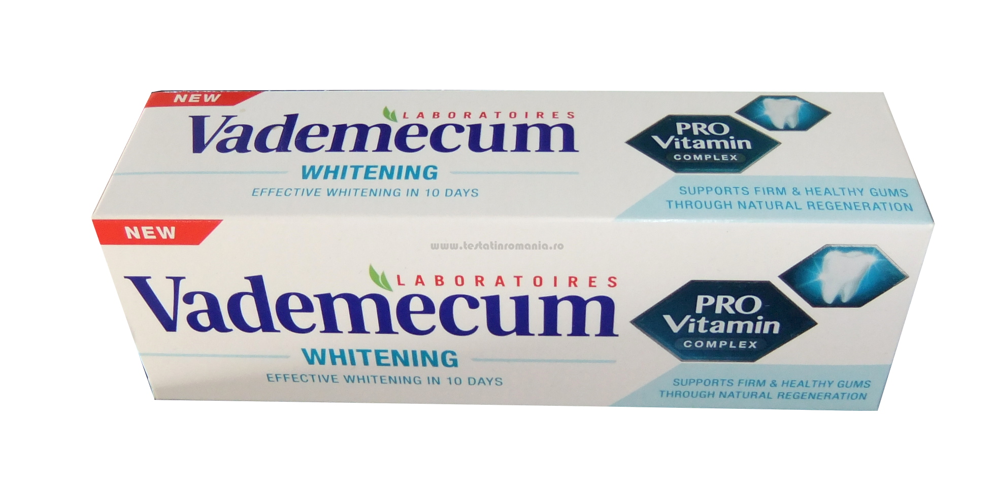 Dacă te speli pe dinți cu pastă de dinți ieftină o simți imediat diferența cu Vademecum. După spălare Vademecum îți menține cavitatea bucală curată și îți ofera un aer proaspăt pentru cca. 2 – 3 ore. Vademecum PROVITAMIN WHITENING spune că îți va albi dinți în 10 zile. Subiectiv parcă dinții mei s-au albit așa o idee, dar nu vă imaginați că o sa aveți dinții albi după un tub de Vademecum PROVITAMIN WHITENING. Oricum nu am cumpărat pasta de dinți în acest scop, ci pentru simplu fapt că este o pastă de dinți bună, comparativ cu cele ieftine.