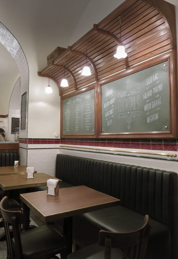 Acest local vă va dezamăgii, nu există Wi-Fi, meniurile sunt atașate de o tabla de lemn, iar în restaurant cât și la bar găsim mai multe table care sunt scrise/desenate cu cretă. Este un loc care îți aduce multa inspirație, însa aici nu se găsește nimic din tehnologia de azi.