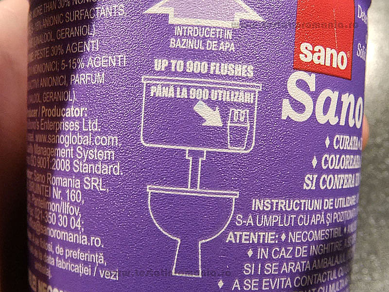 Conform testelor pe care le-am realizat, intr-adevar Sano pentru vasul toaletei ofera peste 1000 de igienizari. L-am instalat in 17.12.2013 si s-a terminat/consumat in 10.06.2013. Deci l-am utilizat aproape 6 luni de zile. Sincer nu imi aduc aminte de vreun produs care sa dureze atat de mult pentru igienizarea toaletei. Felicitari celor de la Sano. Pe de alta parte igienizarea toaletei nu este de nota 10, ci numai de nota 8. Comparativ cu unul dintre concurentii lui, Sano nu curata atat bine ca si Bref, spre exemplu, insa este un produs foarte rentabil datorita numarului imens de igienizari.