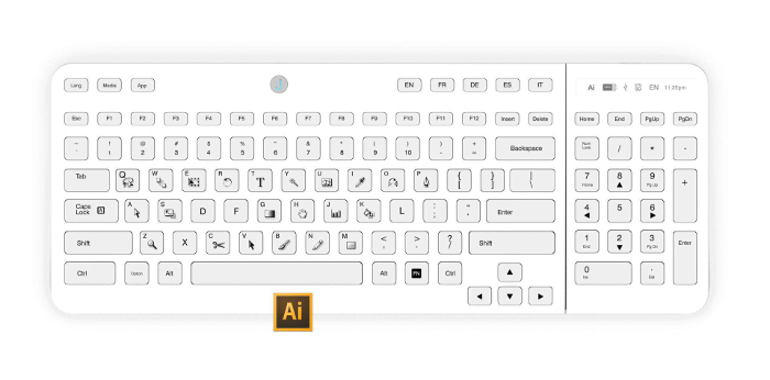 Spre exemplu, pornești Photoshop și tastele se schimba cu uneltele din el, accesezi Adobe Illustrator și la fel, ai acces la unelte direct pe tastatură. Facilitate, te va ajuta să înveți mai ușor programul în care lucrezi și vei opera mai repede.