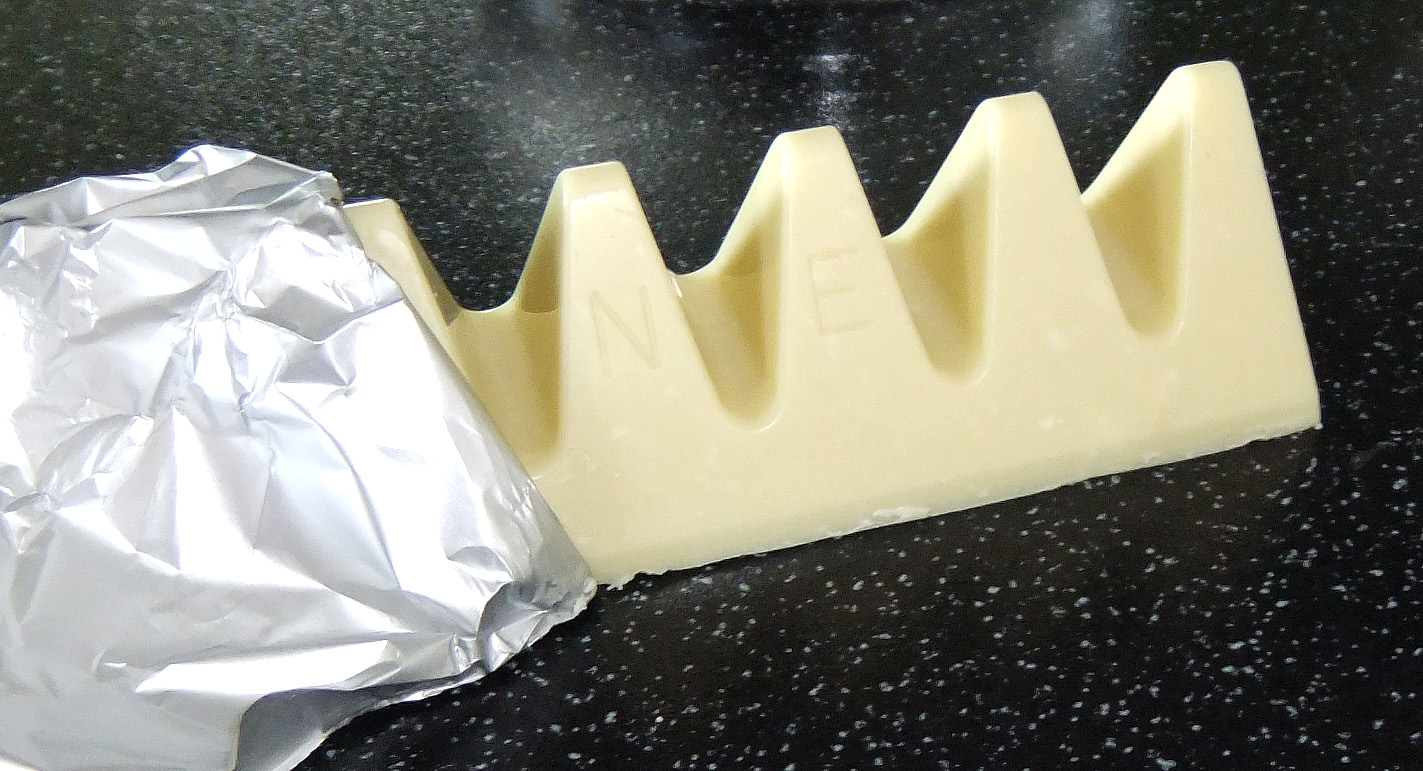 Astazi o gasesti in fiecare magazin, si nu este nicio problema sa o achizitionezi decat impedimentul pretului de 5 lei cu TVA*. Forma, ambalajul nu fac deloc rabat la calitate, calitatea ambalajului fiind excelenta, de la cartonul gros si pana la folia de staniol. Revenind la forma de triunghi, care e inconfundabila, cicolata are un gust remercabil indiferent ca o alegem pe cea neagra sau pe cea alba. Este o cicolata ideala pentru orice tip de eveniment, te poti baza pe ea de fiecare data, eu o consum de 20 ani si nu am nici cel mai mic repros. Nu am intalnit o cicolata TOBLERONE care sa aiba vreo problema indiferent de natura ei. Tiparul literelor pe ambalaj utilizeaza un tipar inalt, astfel daca atingi cartonul triunghiular o sa simti cum ies putin din tipar literele. Termenul de expirare al produsului pe care l-am achizitionat era 02.10.2013. Practic pana la expirare mai avea cca. 3 pana la 4 luni.