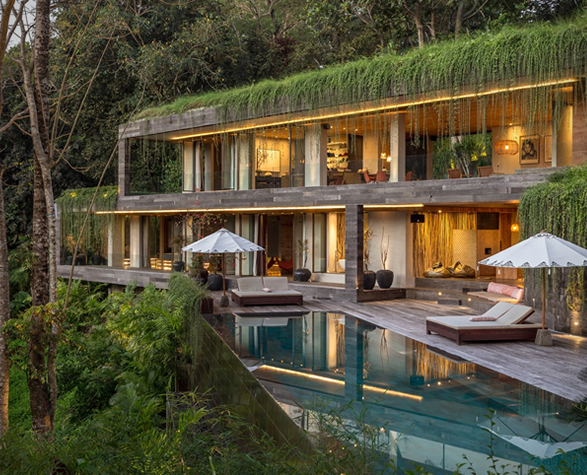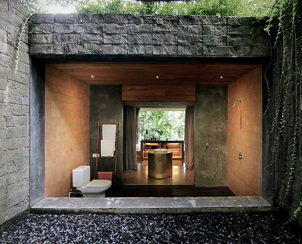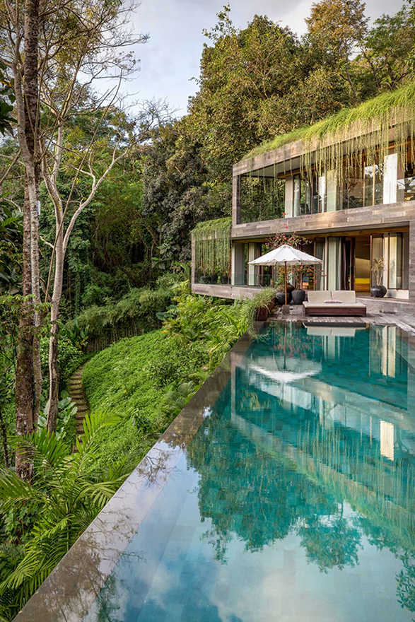 Junglele Bali din Indonezia sunt foarte bogate în vegetație și conțin o varietate impresionantă de manifestări ale vieții ssălbatice, iar una dintre cele mai luxuriante locații este aceasta vilă – denumita Chameleon – care e situată exact în într-o astfel de junglă.